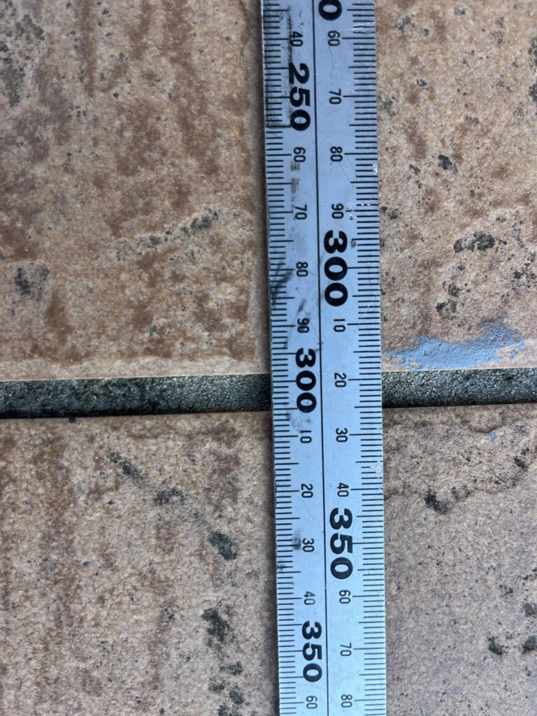 結論から言うと、今回のタイルの実寸は**「298mm × 298mm」**でした。