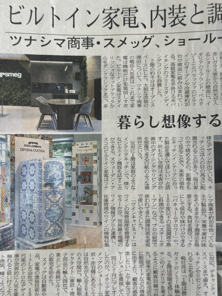 先日の日経MJに、ツナシマ商事×SMEGのショールーム紹介記事が掲載されていました。