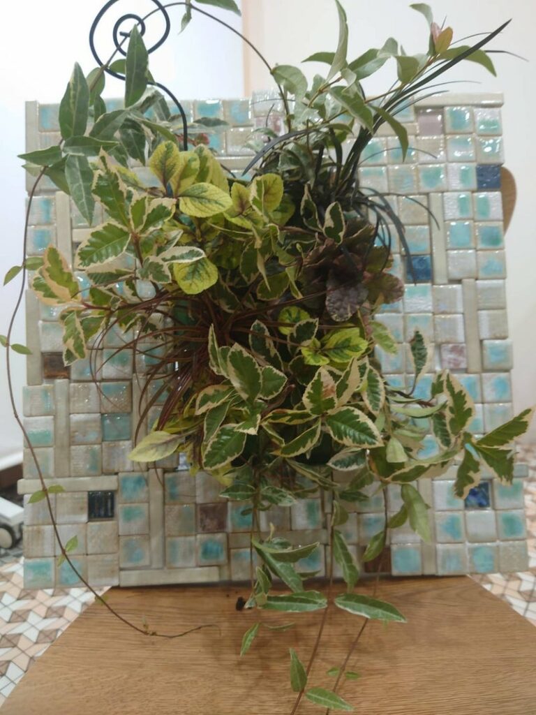 先日、地元の多治見市笠原町で「タイル女子会」が開催され、私の妻も参加してきました。 そこで作られた「モザイクタイルのフラワーアレンジメント(壁掛けプランター)」が、アイデア満載でとても素敵だったので、その作り方と裏側の仕組みを詳しくご紹介します。