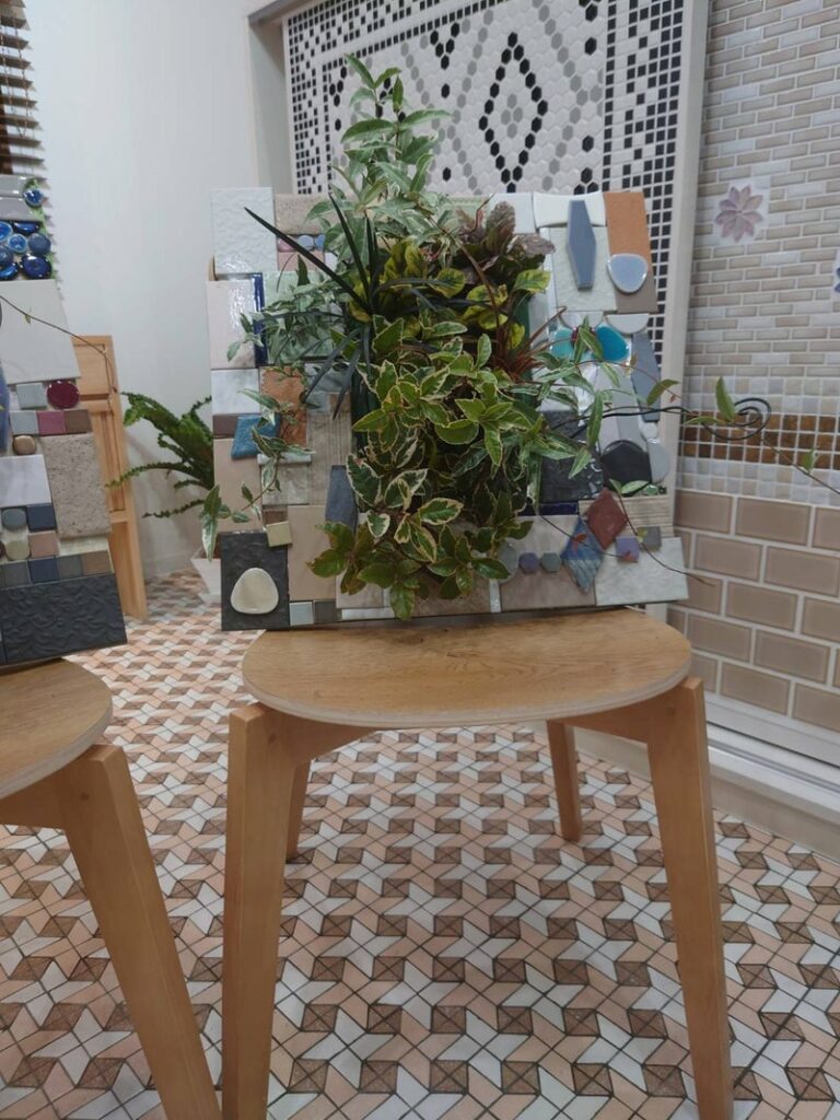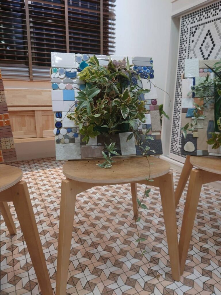 ステップ3:他の参加者様の作品も みなさん、思い思いの色と形で制作されています。 シックなものからポップなものまで、タイルの選び方一つで個性が爆発します。