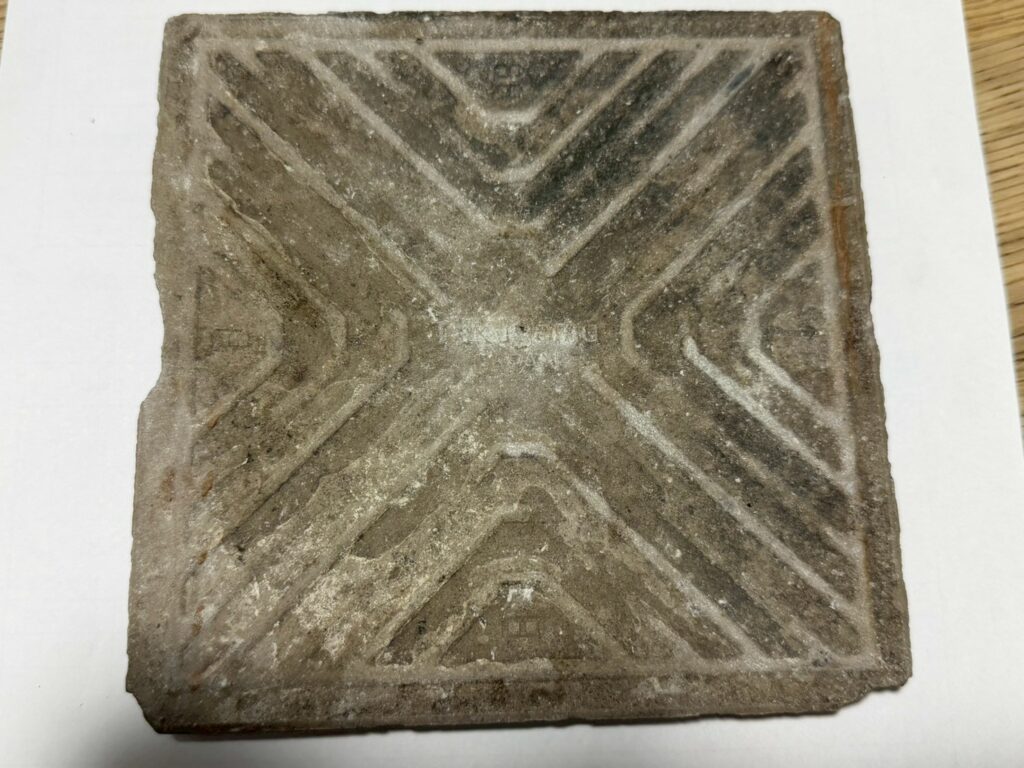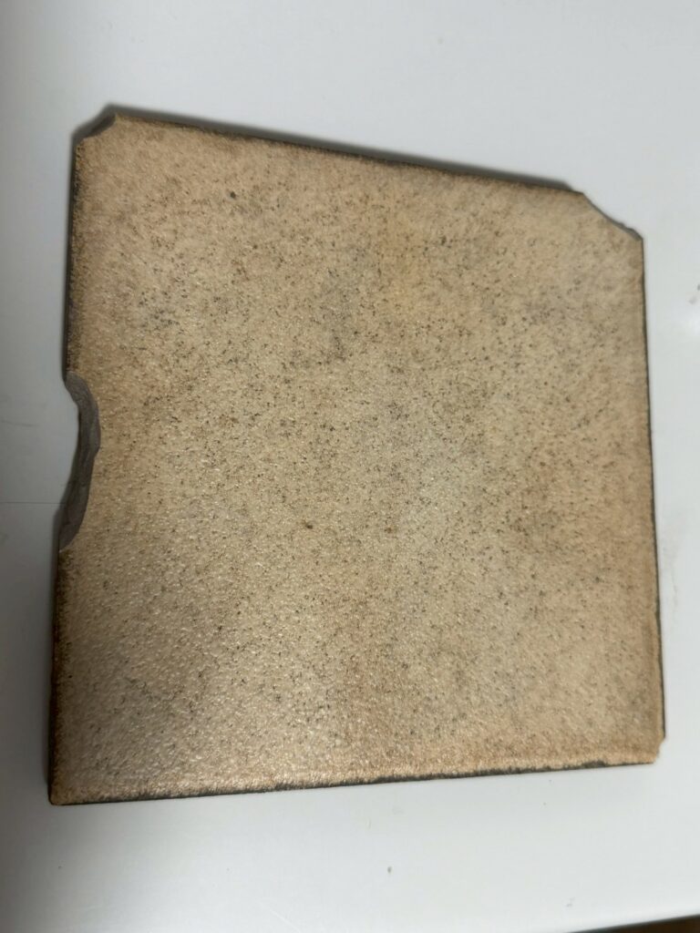 お客様からの情報によると、実寸法が「144mm」とのこと。 150角タイルといっても、実はメーカーによって実寸法が142mmだったり144mmだったりと微妙に違います。 144mmというサイズ感から、昔の国産タイル(おそらく高山製陶製)の規格だと推測できます。