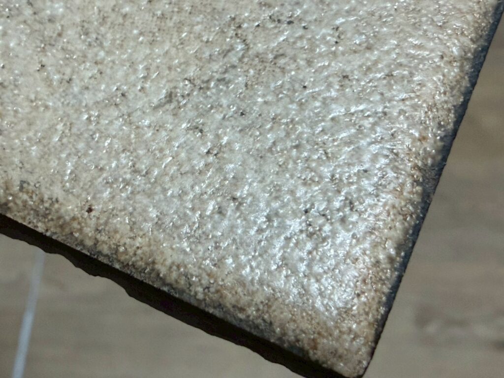 このタイルには細かい斑点(スペックル)が入っており、グロストーンの石目調の雰囲気に比較的近いです。