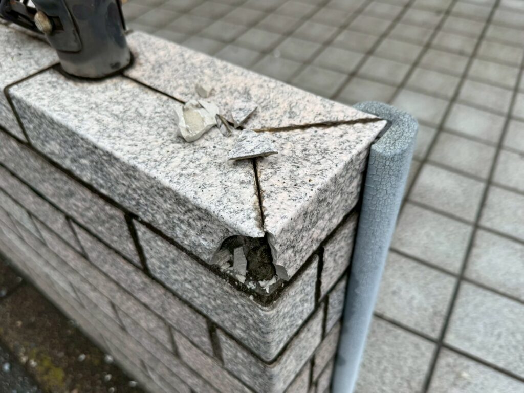 4. ケース3:門柱の角が欠けた「小口平曲がり」