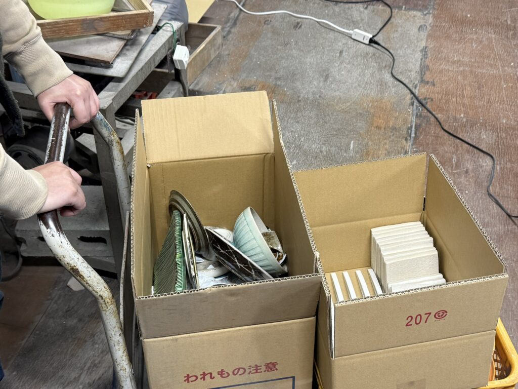 使用する素材は、様々な形状の美濃焼タイルだけではありません。 なんと、「美濃焼の陶器(お茶碗やお皿)」そのものを使います。