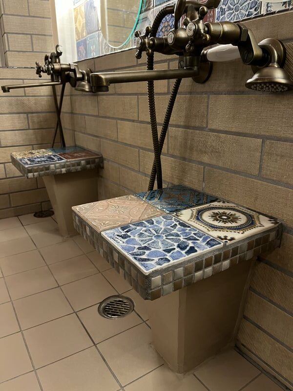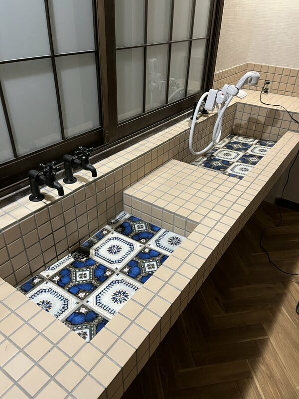 タイル風呂の見どころ—マジョリカ×ガラスブロックのロマン