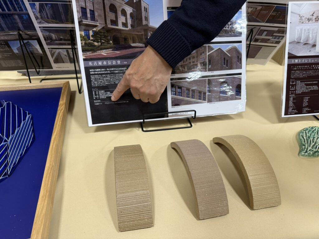 セラスタ展示内には、実際に使われている外装タイルの「角部」の断面展示がありました。