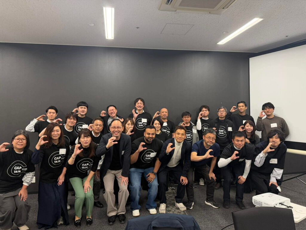 これは単なるセミナーではなく、楽天の店長同士が学び合い、お客様へよりよい価値を提供していこうという素晴らしい取り組みです。お揃いの黒いTシャツを着て、参加店舗の皆さんと一緒に記念撮影も行いました。