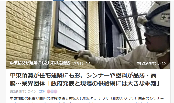 塗料不足のニュースと同様に