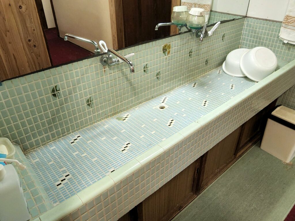 濡れ頻度が高い場所は、100角床の防滑仕様がよく採用されていました。