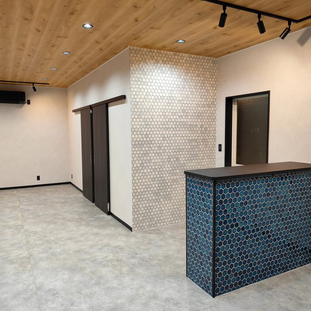今回は、弊社タイルをご採用いただいたALBAXさんをご紹介。ブラック基調に“白×藍”を効かせた和モダン×インダストリアルで、めちゃくちゃ映えます。