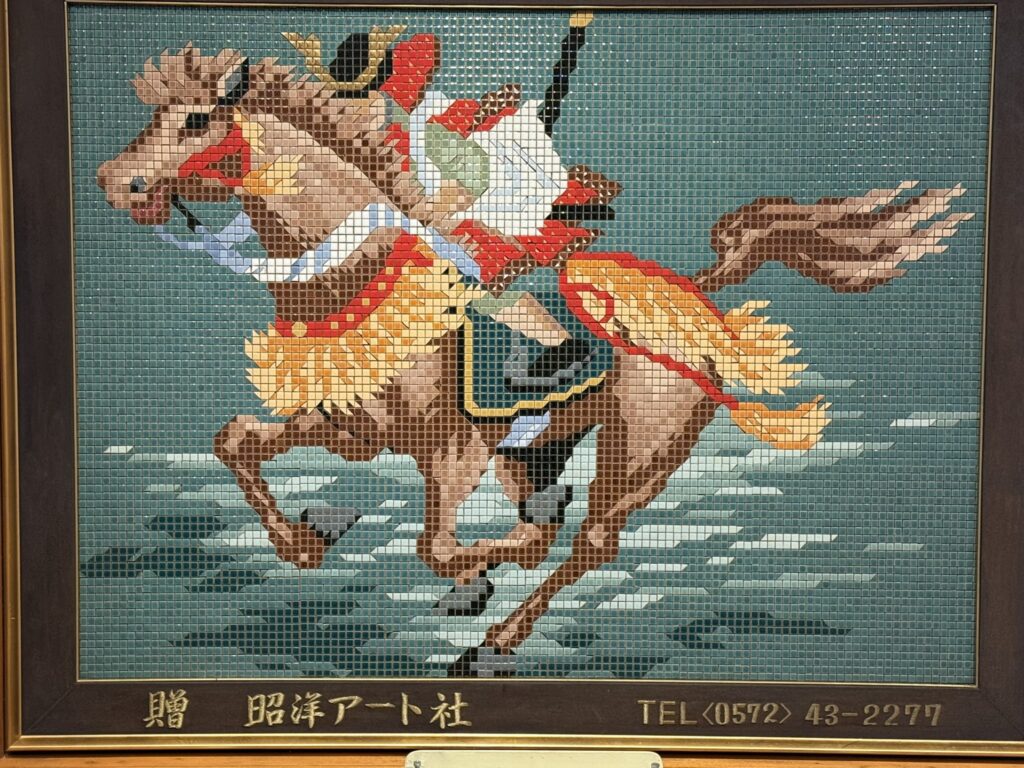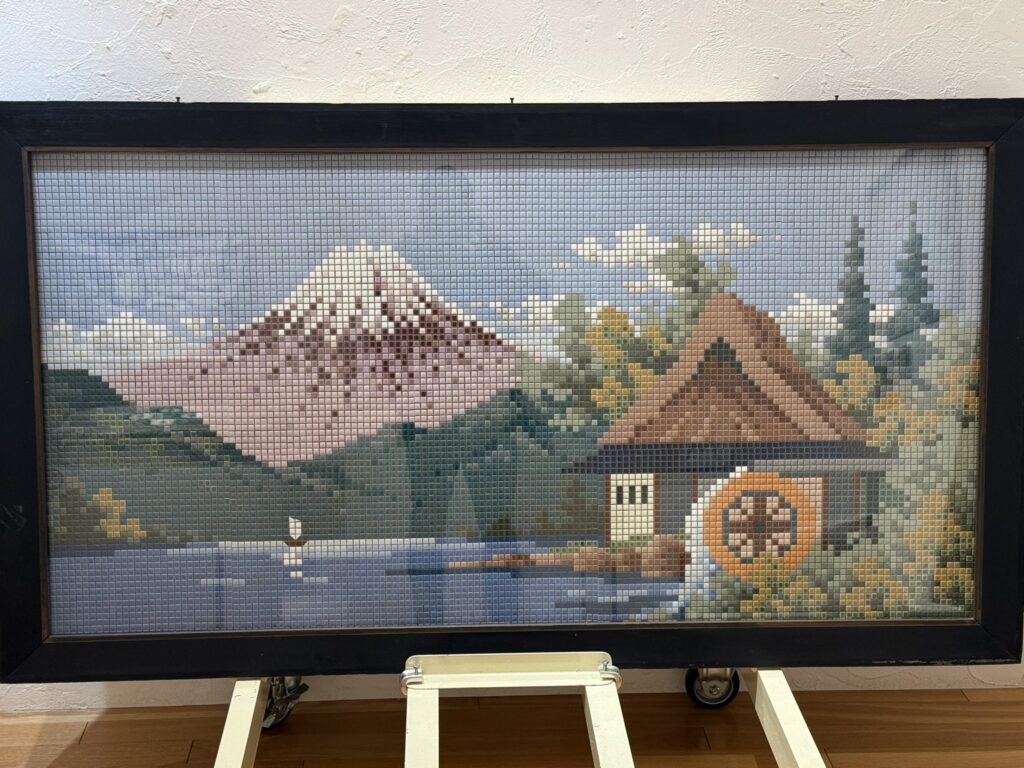 例えば、馬に乗る武士を描いた大作や、富士山と湖畔の風景、日本家屋を描いた作品など、タイルの集合体が織りなす繊細な表現力には目を見張るものがあります。一つ一つの小さなタイルが、見る者の心に深く響く壮大な物語を紡ぎ出しているのです。これらの作品は、タイルの芸術的な可能性を存分に示しています。