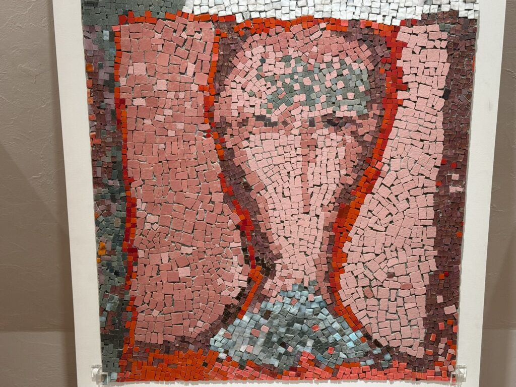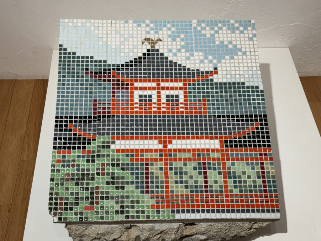 特に目を引くのは、10角モザイクタイルを多用した作品群です。当社の楽天ショップでも人気の10角モザイクタイルが、このような芸術作品にも使われていることを改めて感じさせられます。